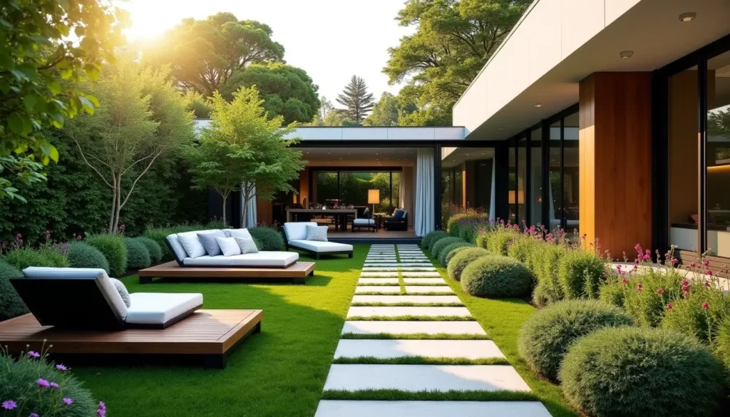 Un jardin transformé en pièce de vie se caractérise par la délimitation de différentes zones, chacune ayant sa fonction propre, à l’image des pièces d’une maison. Ces « pièces » extérieures peuvent être subtilement séparées par des éléments naturels ou architecturaux.